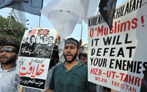 Pakistani protesters belonging to the Hi…Pakistani protesters belonging to the Hizb ut-tahrir Wilayah chant slogans against what they term as the country’s corrupt leaders as they take part of anti-US protest in Lahore on July 27, 2008. Pakistani Prime Minister Yousuf Raza Gilani is set to arrive in Washington on 27 July for talks with President George W. Bush expected to focus on concerns over Islamabad’s efforts against Islamist militants based near the Afghan border. AFP PHOTO/Arif ALI (Photo credit should read Arif Ali/AFP/Getty Images)