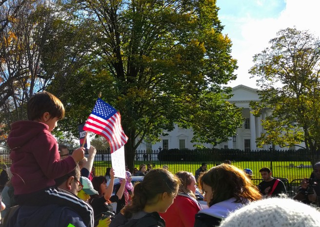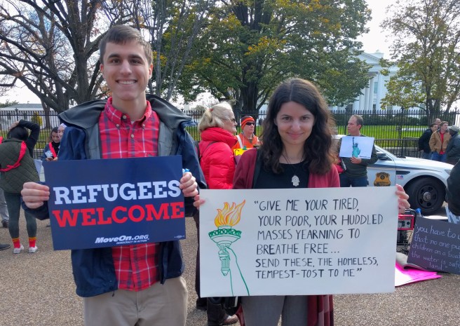 WASHINGTON – A diverse group of students, families, and activists gathered for a peaceful protest in front of the White House this afternoon to call upon federal and local governments to let more Syrian refugees into the U.S.